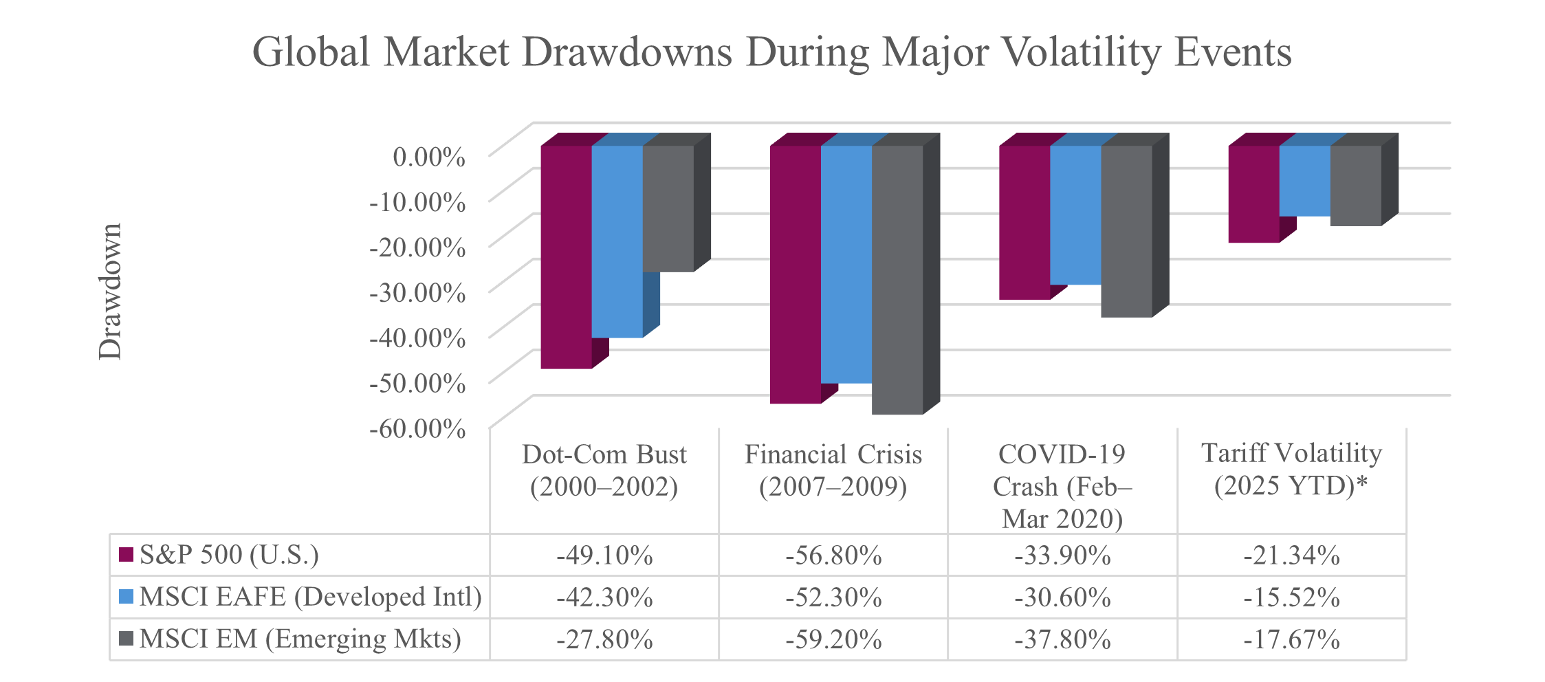 Volatility is a natural part of investing. While headlines can amplify short-term fear, markets have historically rewarded those who stay the course. The key isn’t to avoid volatility but to build a resilient portfolio that can weather uncertainty and participate in long-term global growth.